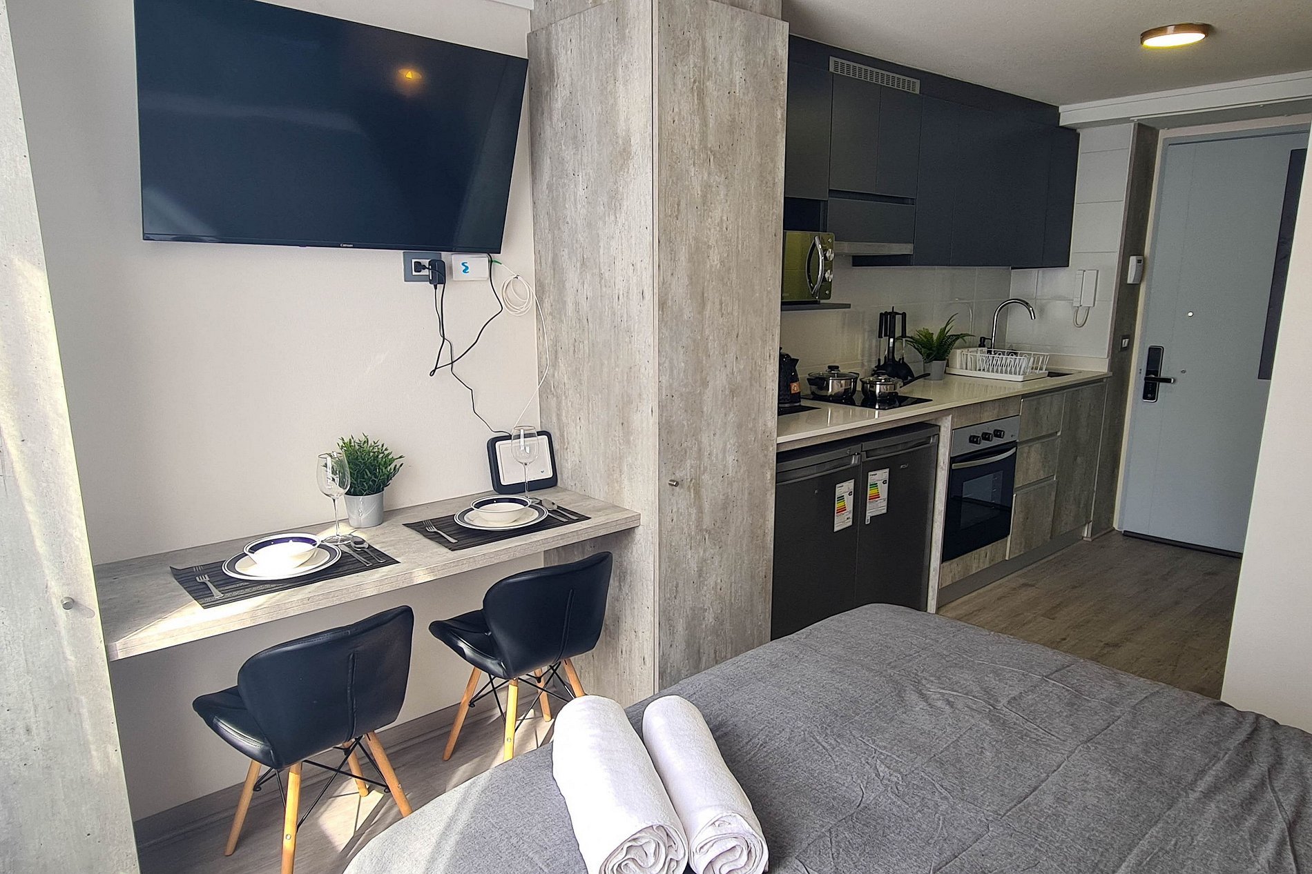 Los departamentos están completamente equipados, con cocina moderna, wifi de alta velocidad, espacios luminosos y mobiliario contemporáneo, perfectos para estadías cortas o prolongadas, ya sea por turismo o trabajo.