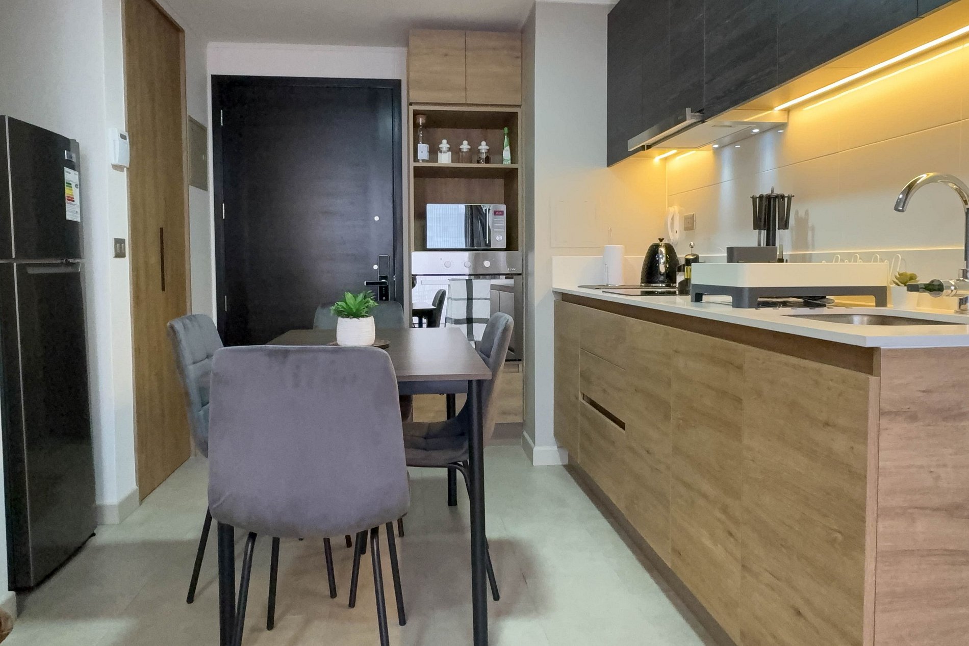 Los departamentos están completamente equipados, con cocina moderna, wifi de alta velocidad, espacios luminosos y mobiliario contemporáneo, ofreciendo confort para estadías cortas o prolongadas.