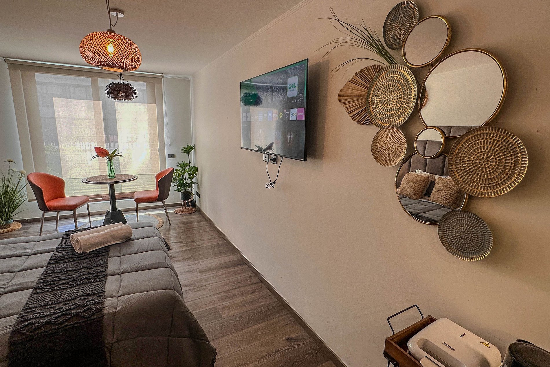 Los departamentos están completamente equipados, con cocina moderna, wifi de alta velocidad, espacios luminosos y mobiliario funcional, perfectos para escapadas turísticas o estadías prolongadas.