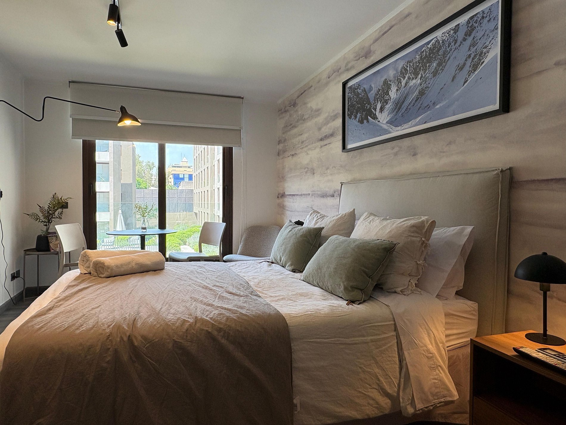 El departamento combina elegancia y funcionalidad en cada detalle. Su cama premium, ropa de cama hotelera y decoración cálida crean un ambiente perfecto para descansar después de un día explorando la ciudad. La cocina completamente equipada te permitirá disfrutar de una estadía práctica y cómoda, ya sea por trabajo o placer.