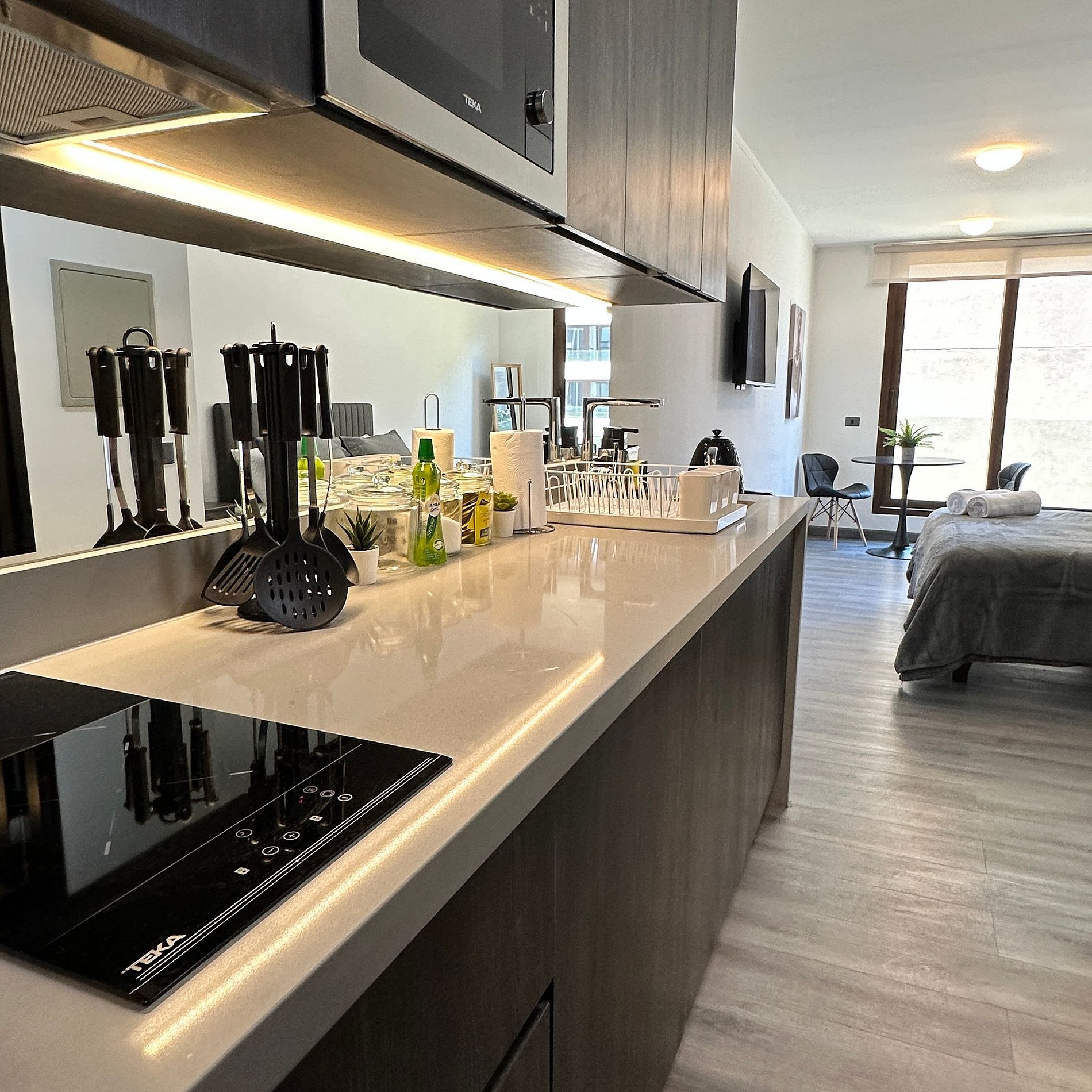 Los departamentos están completamente equipados, con cocina moderna, wifi de alta velocidad, espacios luminosos y mobiliario funcional, perfectos para escapadas turísticas o estadías prolongadas.