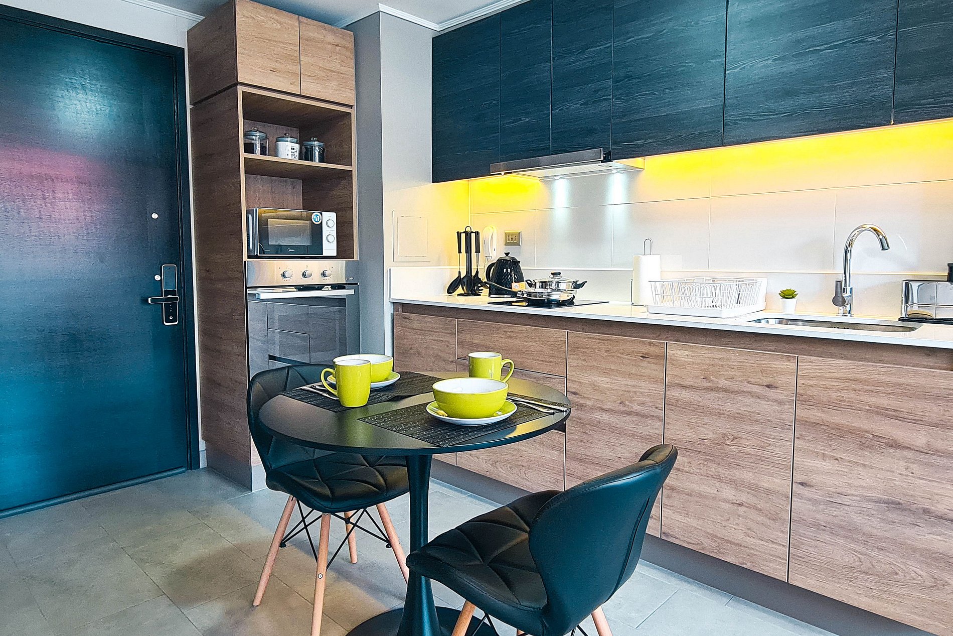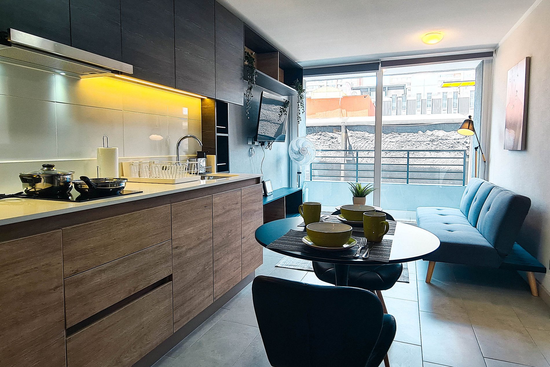 Los departamentos están completamente equipados, con cocina moderna, wifi de alta velocidad, espacios luminosos y mobiliario contemporáneo, ofreciendo confort para estadías cortas o prolongadas.
